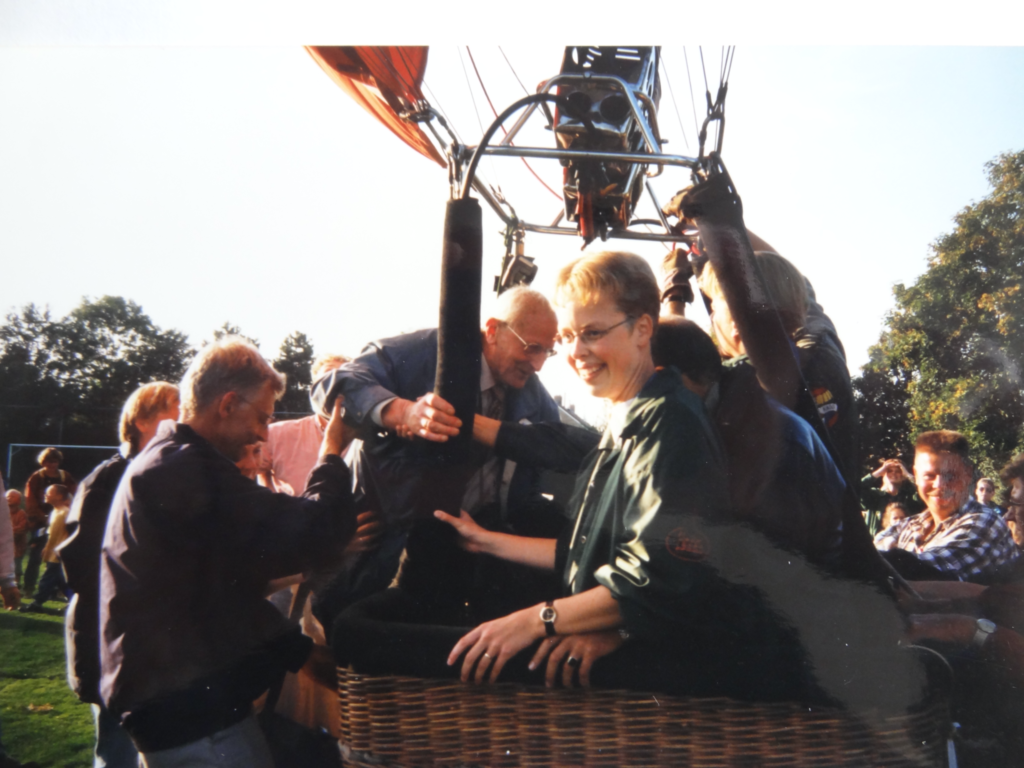 De dochter van Piet de Vries, mevrouw Post ( partner van Harry Kampinga), de heer Assies uit Ten Post en dhr. Havinga uit Loppersum zaten in de mand van de ballon. De piloot van de luchtballon was Ronnie Kleinsmit.
